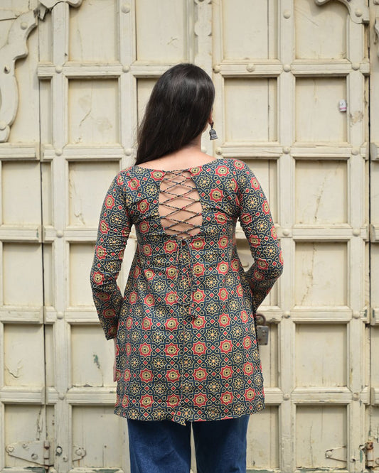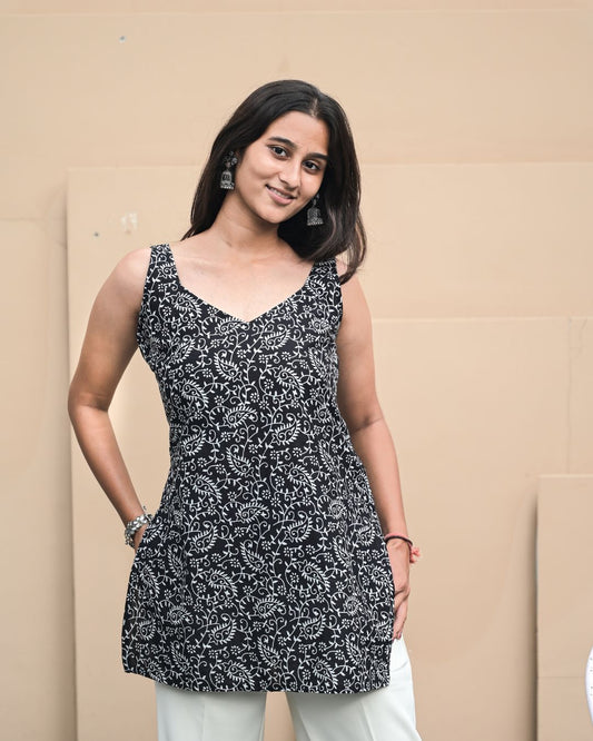 SHARINI COTTON BLACK IVY KURTI – TIE-UP OPEN BACK