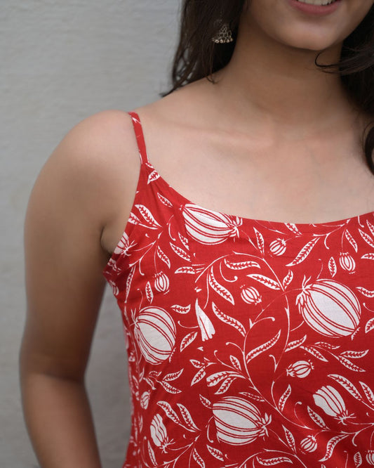 RUHANI COTTON RED BLOSSOM SLEEVELESS TOP